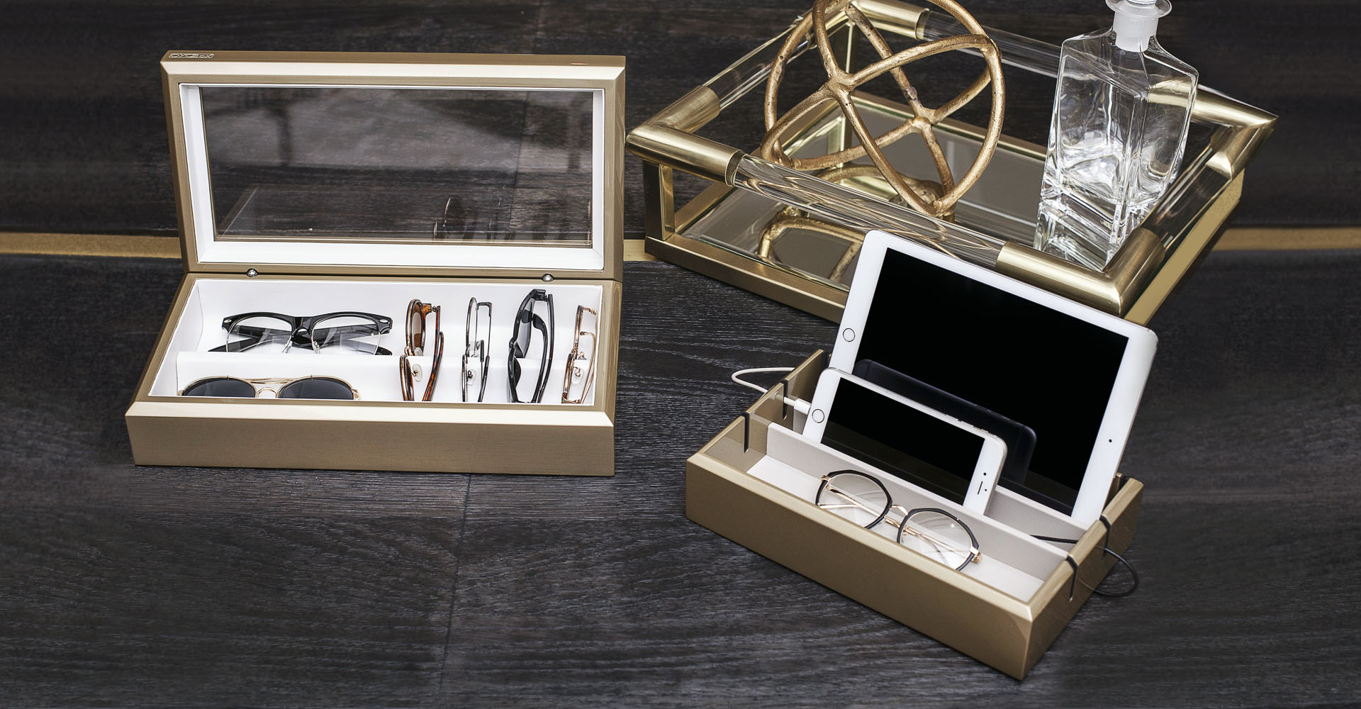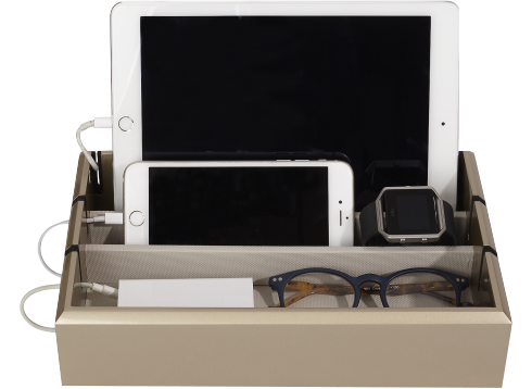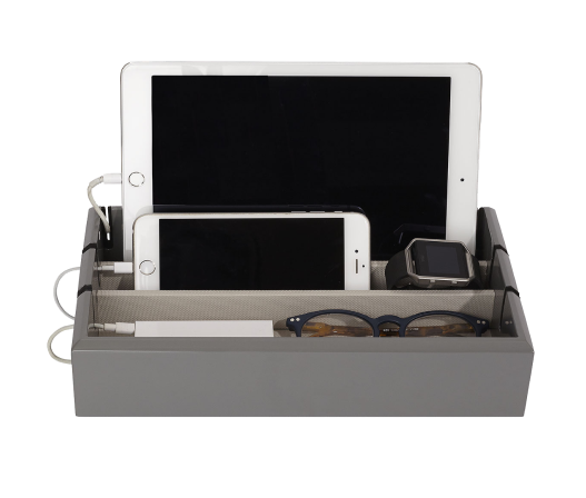 Charge your mobile devices with ease. With specially engineered interior partitions and six wire groove entry points, the OYOBox Tech Tray allows you to effortlessly charge all of your mobile devices in style.
